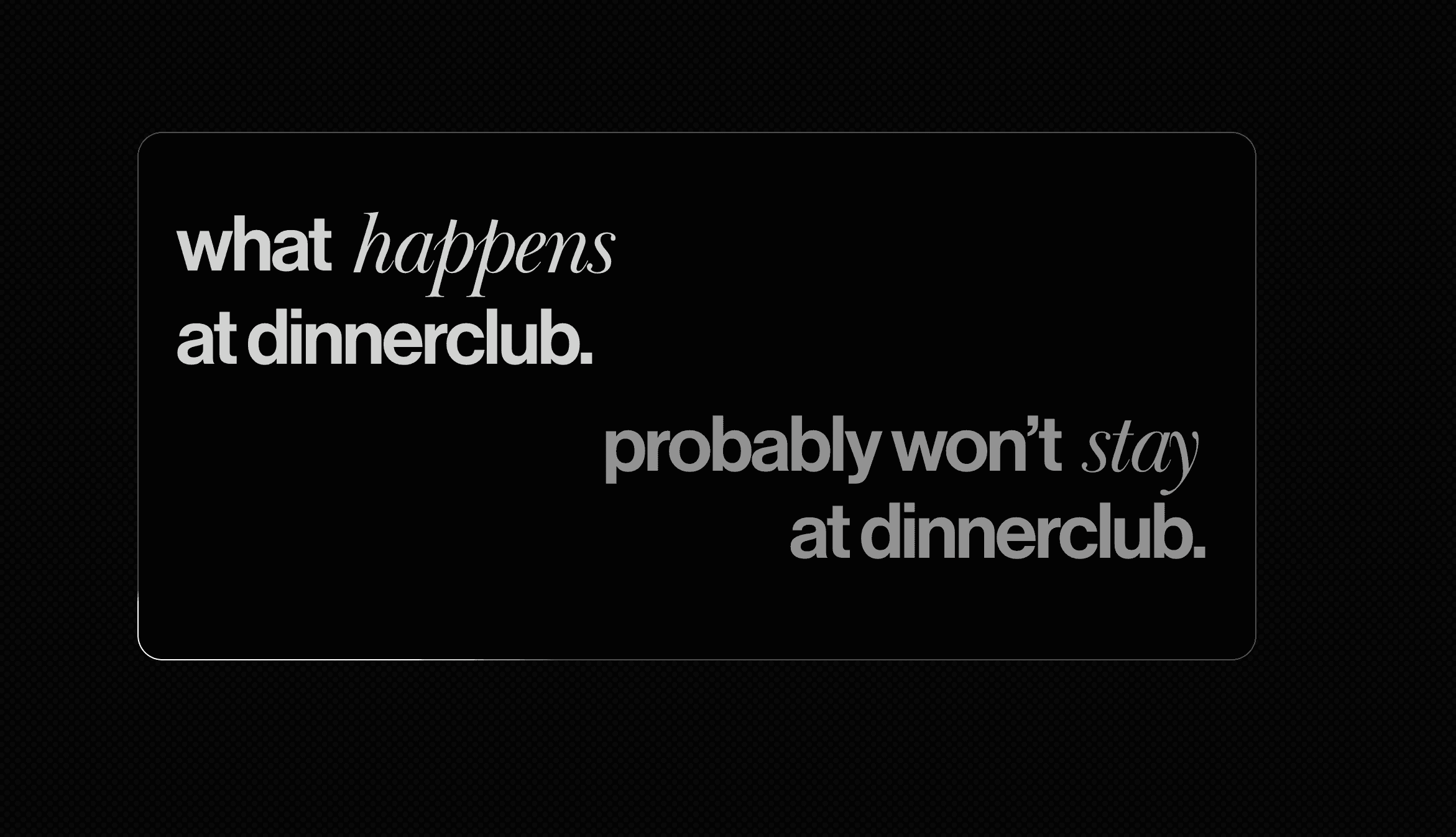 Sunny knew that he wanted DinnerClub to be a digitally native brand, so we built a visual and verbal system designed for modern gravity: bold minimalism paired with tonal contrast, soft edges, and confident typography. Paragon handled website design and build, while I directed the brand narrative and art direction to ensure coherence across site, socials, and community programming.